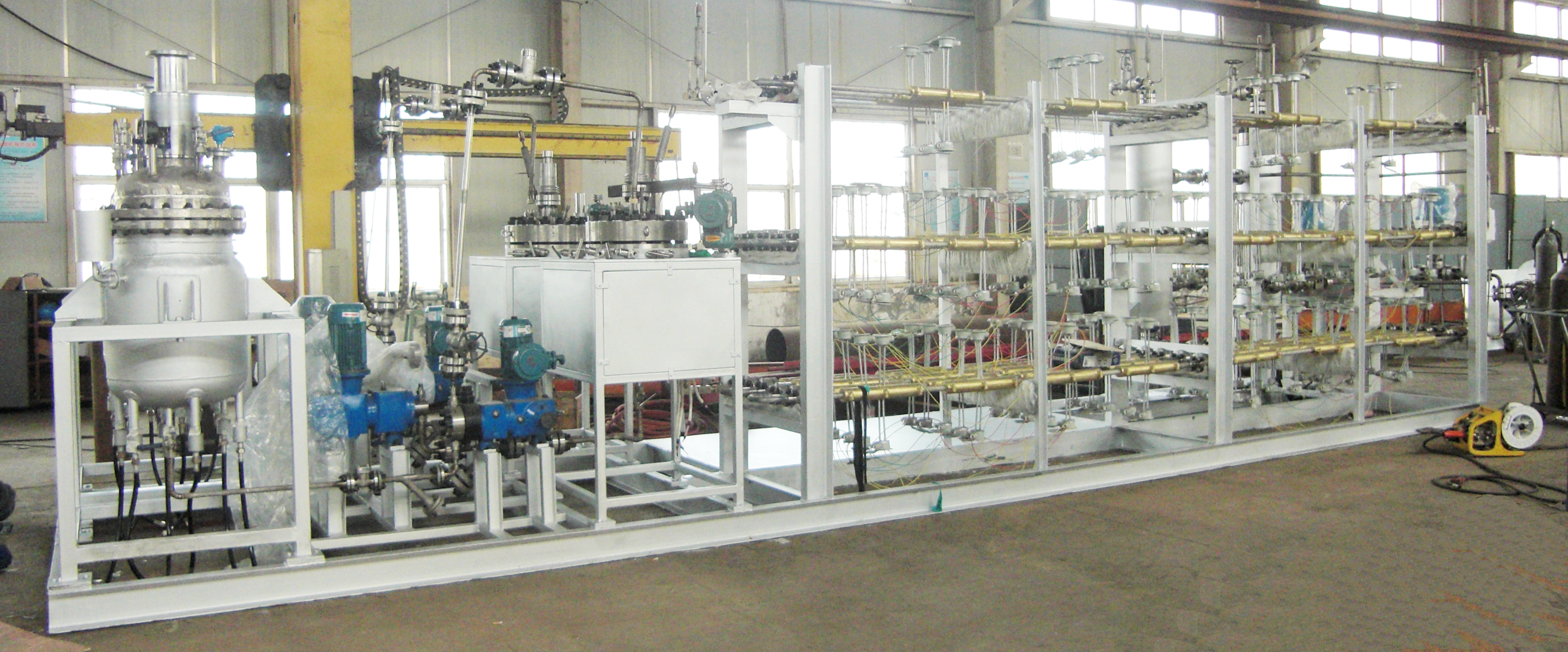 加氫反應(yīng)分為吸熱反應(yīng)和放熱反應(yīng),有些加氫反應(yīng)在反應(yīng)過程中會釋放大量的熱能。為了生產(chǎn)安全,并及時降低釜內(nèi)溫度,有些工藝要求釜內(nèi)配大面積的冷卻盤管。此時單層冷卻盤管無法滿足工藝要求,需要雙層或更多層盤管有效及時降溫。正威機(jī)械生產(chǎn)的6層盤管內(nèi)配吸氫攪拌槳,加…